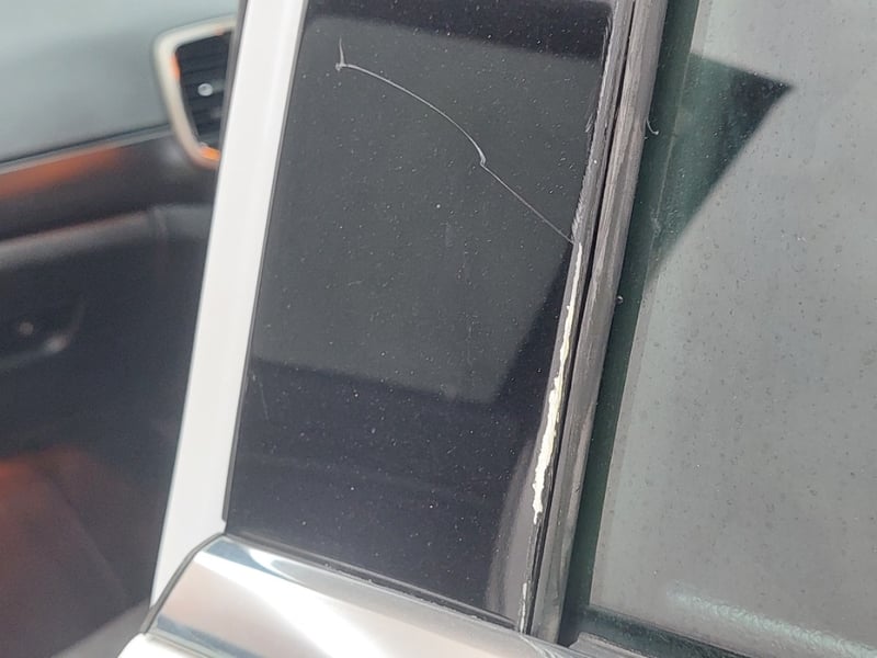 * Crack and scratch to B-pillar gloss-black trim panel (cosmetic)