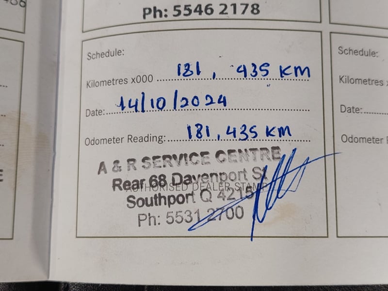 * Service stamp at 181,435km (A & R Service Centre, Southport QLD, October 2024)