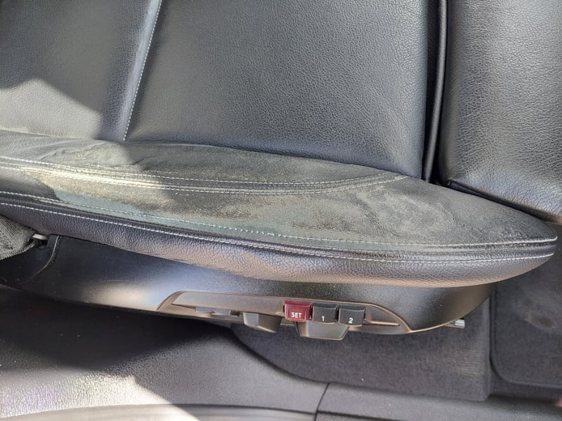 * Driver seat Alcantara centre panel: moderate wear and nap flattening consistent with mileage