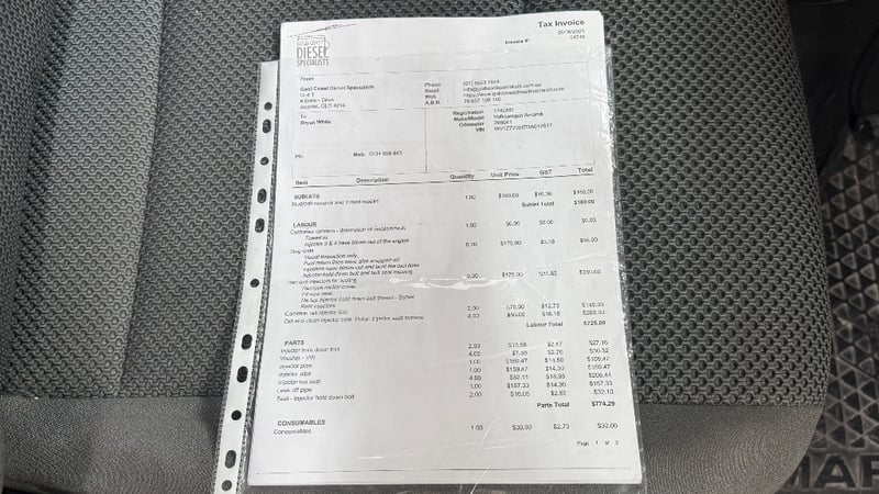 * Service note: Injector hold-down bolt repair completed at approximately 298,641km (September 2025, Gold Coast Diesel Specialists)