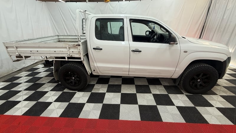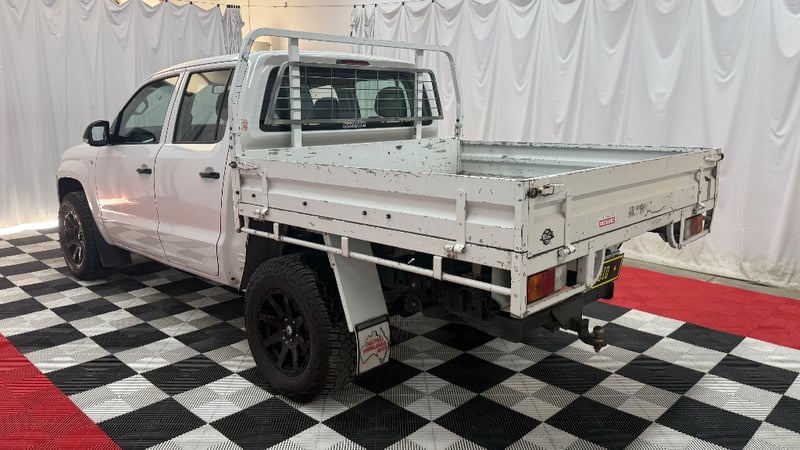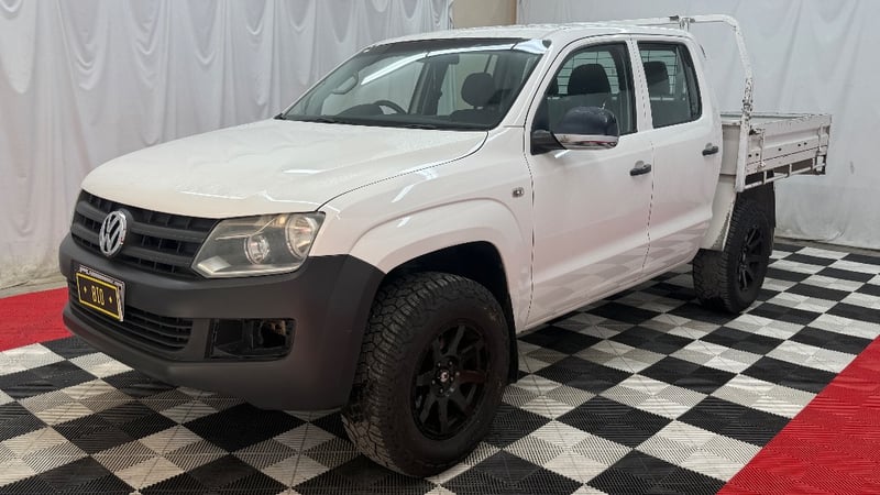 2013 Volkswagen Amarok 2H TDI400 dual-cab chassis/tray, 2.0L TDI turbo diesel, 6-speed manual, 4MOTION 4WD, 299,982km, 5 seats.