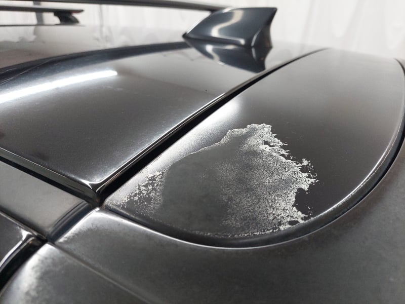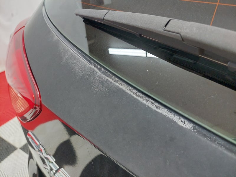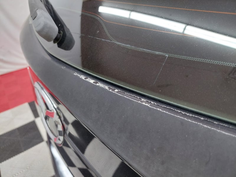 * Rear tailgate: clear coat peeling along the lower edge of the rear window