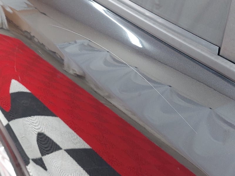 * Lower sill area, driver's side: surface scratch and paint chipping