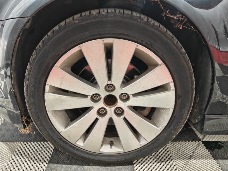 * Rear left wheel arch edge: active rust where paint has lifted, approximately 30-40mm