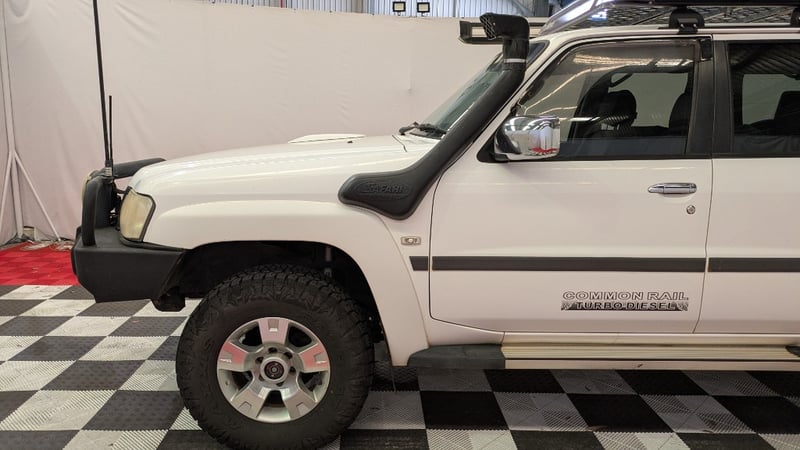 2012 Nissan Patrol GU - White - 258,428km - ZD30 3.0L Turbo Diesel, 5-Speed Manual, New Fuel Pump, 2 Inch Lift, Bull Bar, Safari Snorkel, Roof Rack, Awning, Dual Battery, WA Rego Until Sep 2026