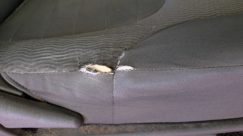 * Slight tear in driver's seat fabric (vendor disclosed, foam exposed at seam)