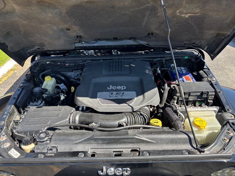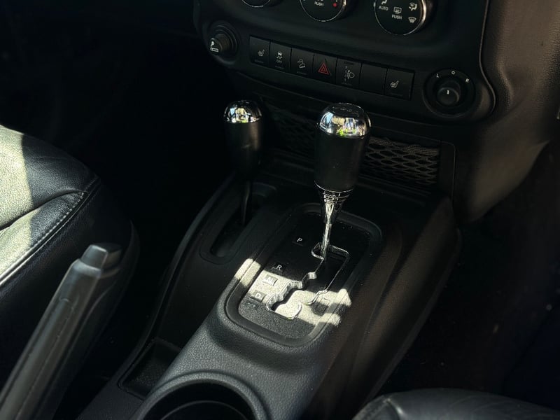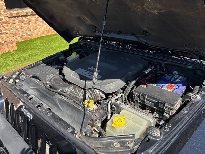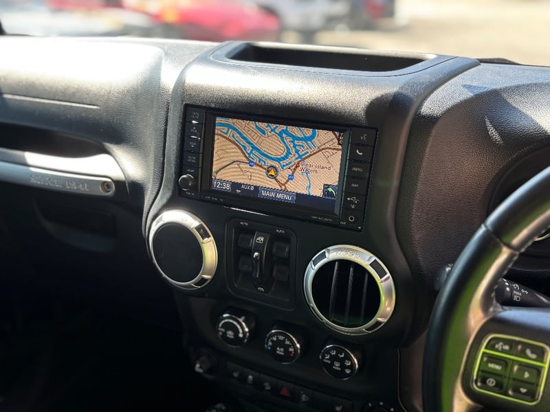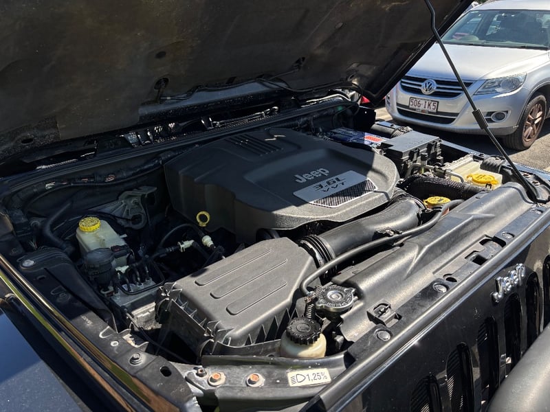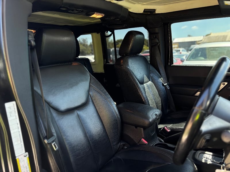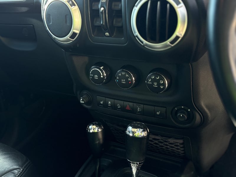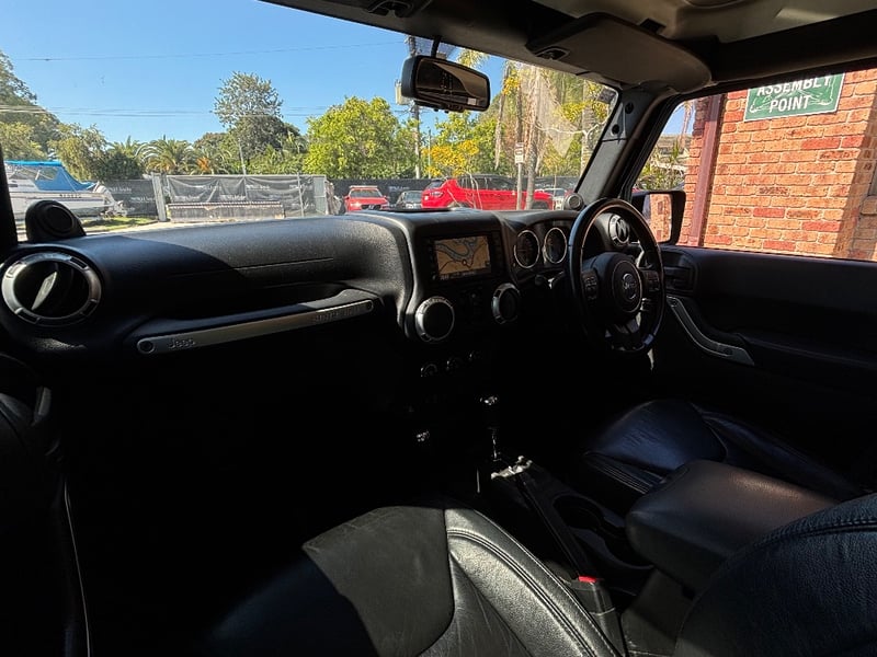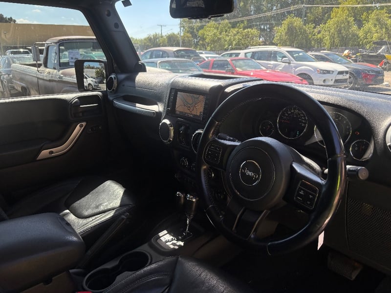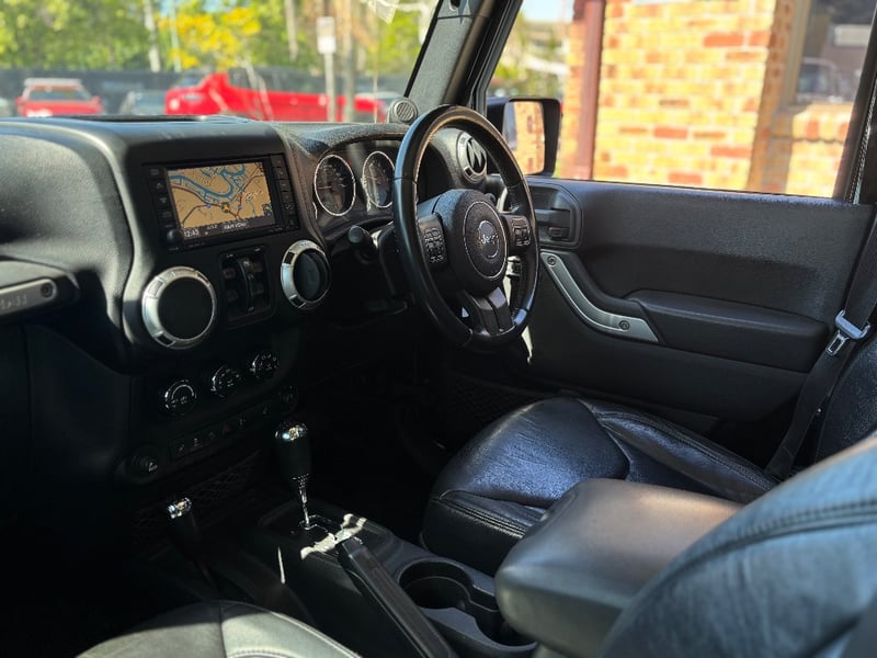 The Jeep Wrangler Unlimited Overland is the top-specification four-door JK, bringing leather upholstery, factory navigation, and premium Infinity audio to the Wrangler's proven off-road platform. Powered by Chrysler's 3.6-litre Pentastar V6 with variable valve timing, it delivers confident performance across both sealed and unsealed roads. The Command-Trac part-time 4WD system provides genuine low-range capability for serious off-road work. The factory hardtop is fitted and the Freedom Top removable front panels remain in place.