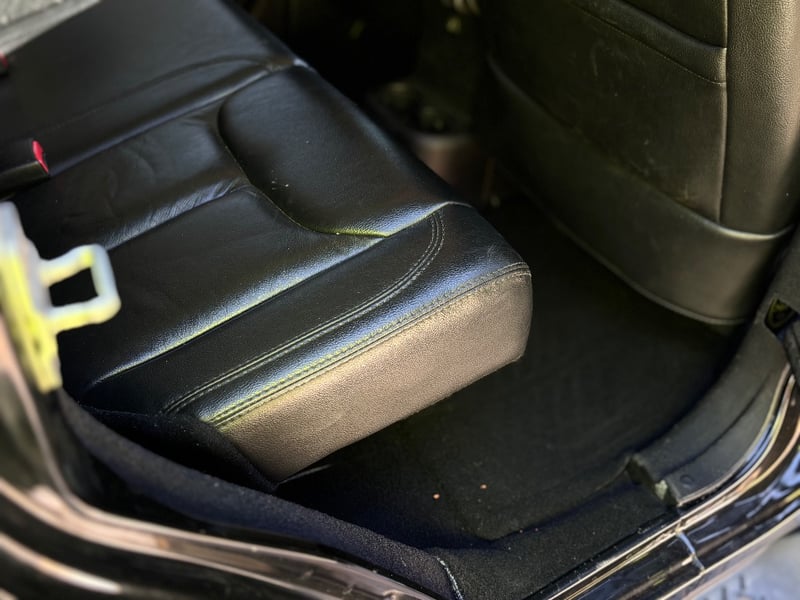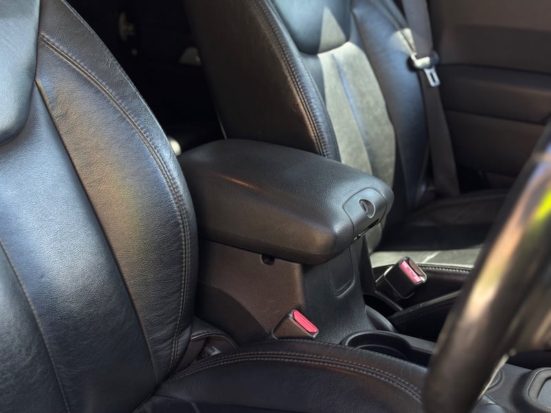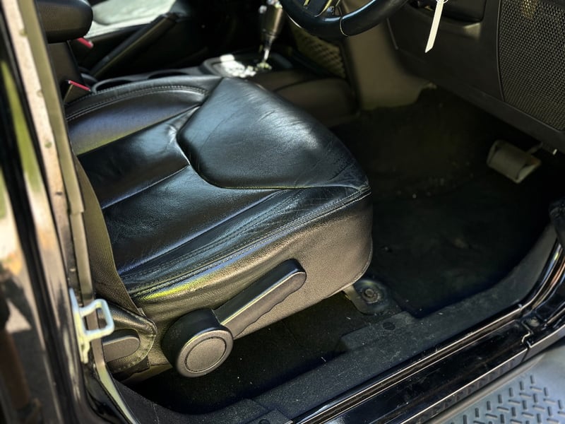 * Black leather upholstery with contrast stitching