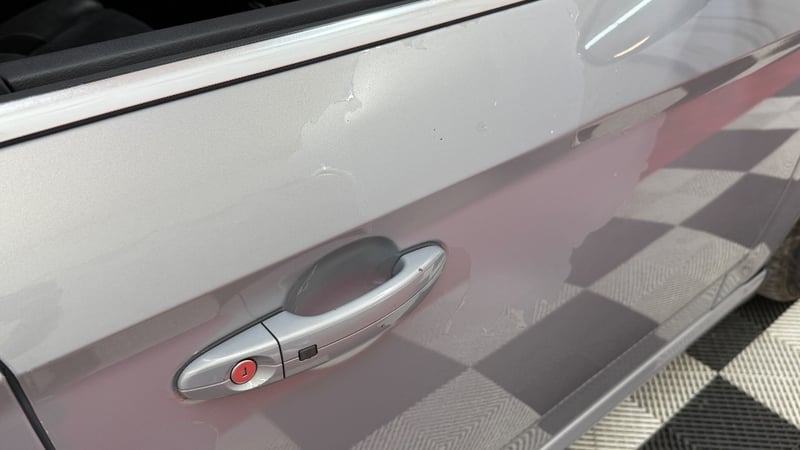 Minor surface scratches to driver door handle, light scuffing to lower body panel (passenger side). Inspection recommended.