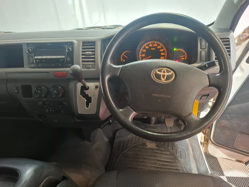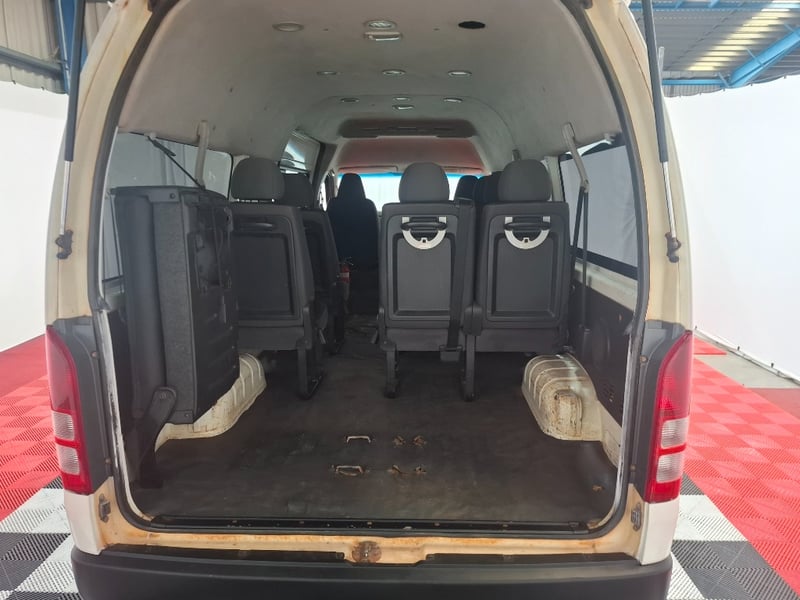 Comparable 2010-2011 Hiace Commuters in driveable condition with similar kilometres are asking $10,000-$16,000 on private market. This example's interior wear and boot panel damage position it toward the lower end of that range, representing an accessible entry into a reliable and commercially compliant 12-seat platform.