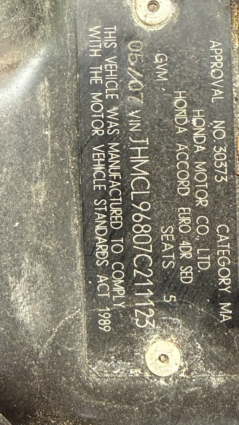 The CL9 Accord Euro was Honda's flagship Australian-market sedan, built around the K24 i-VTEC engine and a specification that prioritised refinement over raw power. The 2.4-litre four-cylinder is smooth, free-revving, and mechanically well-regarded, and this example was complied for Australian roads in May 2007.