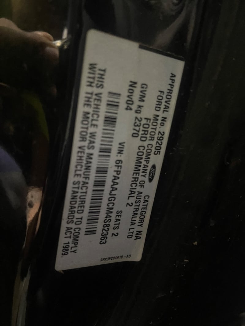 2004 Ford Falcon XR8 BA MKII, 2-door single cab ute, 5.4-litre V8, 4-speed automatic, 197,971km, 2 seats.