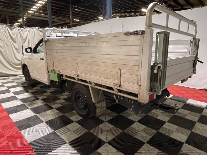 The Hilux single-cab is Australia's go-to work ute, and this December 2023 Workmate arrives as a ready-to-work commercial package. Built as a purpose-oriented workhorse, the Workmate grade delivers the fundamentals without compromise. A proven 2.7-litre petrol with a 6-speed automatic, rear-wheel drive, and the reliability Toyota has built the Hilux brand on. This example was produced in December 2023 and has covered 77,299km, putting it firmly in early working life for a ute of this calibre.