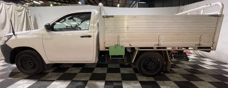 2023 Toyota Hilux Workmate single-cab, 2.7-litre 2TR-FE petrol, 6-speed automatic, rear wheel drive, 77,299km, 2 seats.