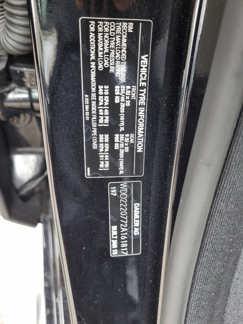 2015 Mercedes-Benz S-Class W222 S63 AMG SWBYear: 2015Make: Mercedes-BenzModel: S-ClassSeries: W222Badge: S63 AMG SWB Body: 4-Door SedanDrive Type: Rear wheel driveEngine: 5.5 PetrolTransmission: AutomaticColour: BlackSeats: 5Description/extras: VIN: WDD2220772A161817ENG No: 15798560069674(Key #AA23 (vic))Lloyds stock #993849+1