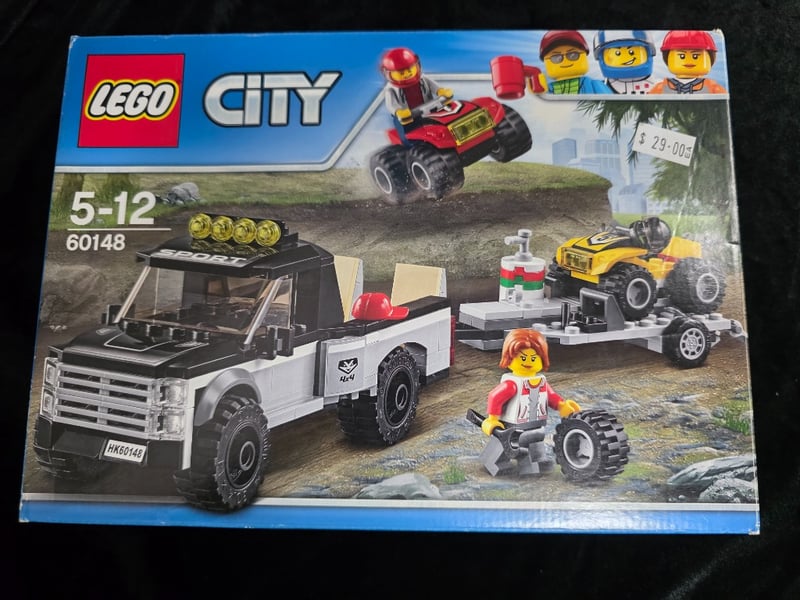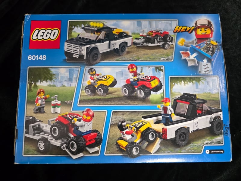 Lego City Set 60148 Featuring A White And Black Pickup Truck With Functional Cargo Bed, Yellow And Red All-Terrain Vehicles, And A Construction-Themed Ensemble. Set Includes Minifigures With Construction Apparel And Accessories. Combines Building And Imaginative Play With Multiple Motorized Vehicles Suitable For Ages 5-12.