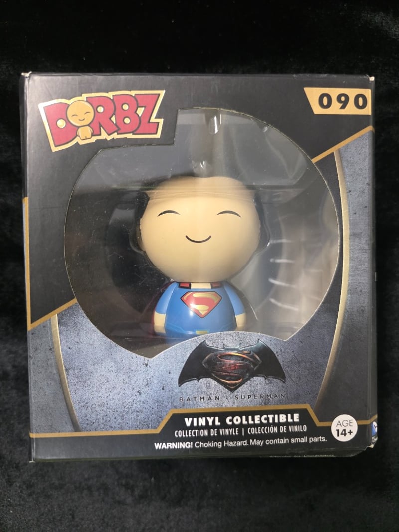 Funko Orb #090 Superman Vinyl Collectible From The Batman V Superman Collection, Featuring A Cream-Coloured Character With Blue Superman Suit And Red Emblem. Includes Matching Batman-Themed Packaging With Window Display. Condition Shows Minor Wear To Packaging Box Edges And Creasing. Age Rating 14+.