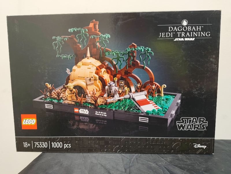 Lego Star Wars Dagobah Jedi Training Set (75330) Featuring 1000 Pieces. This Advanced Adult-Oriented Collectible Recreates The Iconic Swamp Training Grounds From The Empire Strikes Back, Complete With Yoda'S Dwelling, Training Equipment, Minifigures Including Luke Skywalker And Yoda, And Intricate Landscape Detailing. The Set Showcases Impressive Architectural Elements With Earthy Terracotta And Tan Structural Components Contrasted Against Vibrant Green Foliage, All Mounted On A Detailed Display