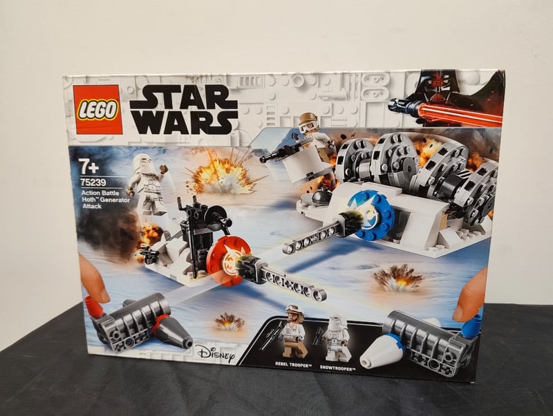 Lego Star Wars Set 75239 Featuring The Iconic Battle Of Hoth Scene. Includes Buildable Hoth Generator With Rotating Elements, Two At-At Walkers With Poseable Limbs, Speeder Bike With Minifigure, And Two Minifigures (Rebel Trooper And Snowtrooper). Original Retail Packaging With Age-Appropriate 7+ Rating. Complete With Construction Elements And Interactive Play Features Depicting The Classic Empire Strikes Back Battle Sequence.