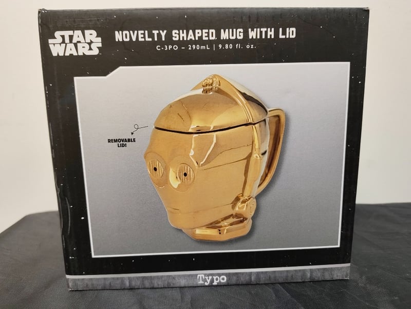 Collectible Star Wars C-3Po Character Mug Featuring Gold-Coloured Dolomite Construction With Removable Lid. Capacity 290Ml (9.80 Fl. Oz.). Designed And Manufactured In Australia By Typo, Officially Licensed Disney Merchandise. Original Packaging Intact With Multilingual Care Instructions. Not Suitable For Microwave Or Dishwasher Use.