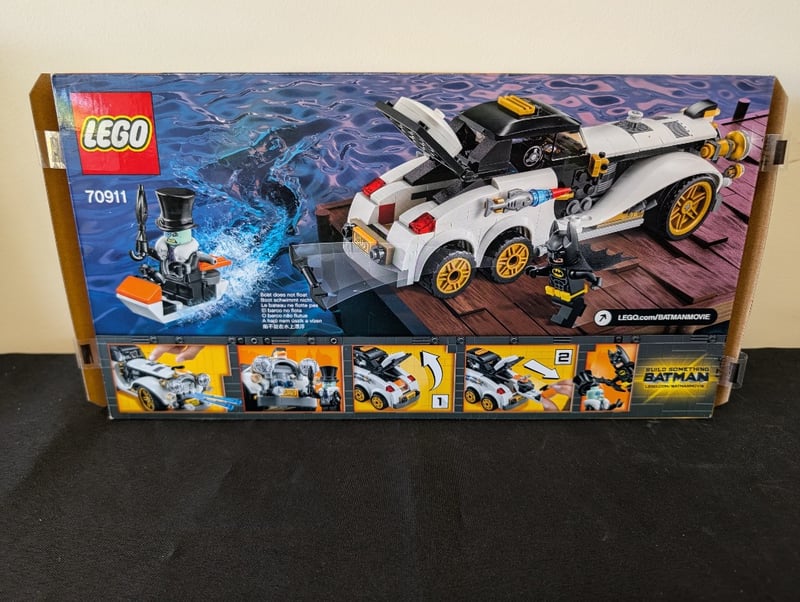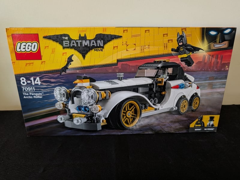 LEGO THE BATMAN MOVIE SET 70911 THE PENGUIN ARCTIC ROLLER Item Size: Height: 35cm, Width: 35cm, Depth: 35cm, Weight: 2Kg Lego The Batman Movie Set 70911 Featuring The Penguin'S Arctic Roller Vehicle. Comprises White And Black Motorized Car With Yellow Accents, Opening Cockpit, Dual Front Headlights, And Torpedo Launcher. Includes Batman Minifigure And The Penguin Minifigure. Original Sealed Packaging With Instruction Manuals Visible. Age Range 8-14 Years. Complete With All Visible Components And Accessories. Condition: Good - Refer To Images 655508+109