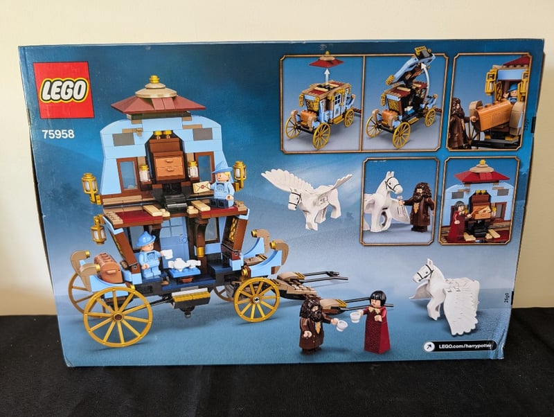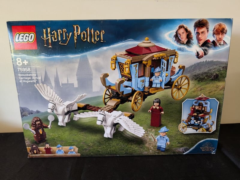 Lego Harry Potter Set 75958 Featuring The Iconic Beauxbatons' Carriage With Winged Pegasus Horses, Detailed Interior Compartment, Multiple Minifigures Including Madame Maxime, And Intricate Architectural Elements Inspired By The Goblet Of Fire Film. Includes Articulated Wheels, Opening Carriage Doors, And Authentic Wizarding World Accessories.