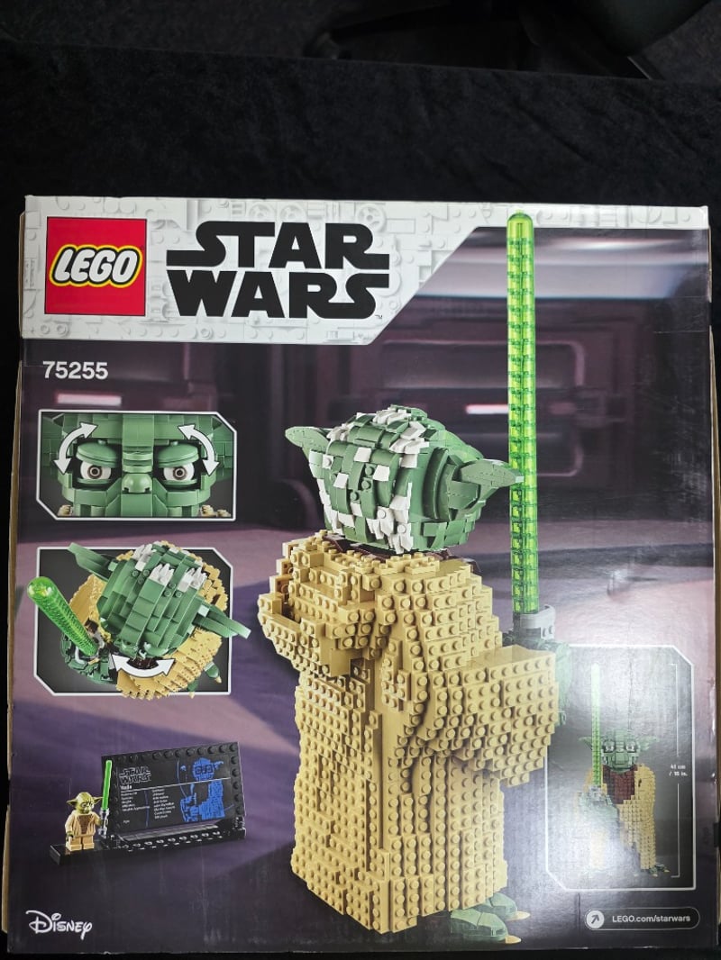 LEGO STAR WARS YODA 75255 BUILDABLE FIGURE SET Item Size: Height: 34cm, Width: 19cm, Depth: 19cm, Weight: 0.2Kg Lego Star Wars Set 75255 Featuring An Iconic Buildable Yoda Figure Constructed From Green And Tan Bricks With Articulated Limbs, Detailed Facial Features, And Light-Up Lightsaber Accessory. Includes Minifigure, Instruction Manual, And Display Base. Age 10+. Condition: Good - Refer To Images 655508+4