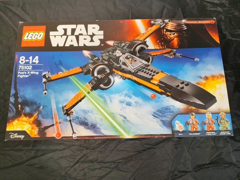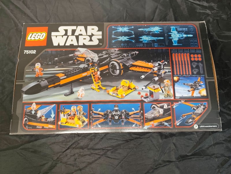 Lego Star Wars Set 75102 Featuring Poe'S X-Wing Fighter With Poseable Wings, Detailed Cockpit, Bb-8 Droid Figure, And Four Minifigures (Poe Dameron, Two Resistance Pilots, And General Hux). Original Retail Packaging With Age-Appropriate Rating 8-14 Years. Includes Buildable Ground Support Elements And Accessories.