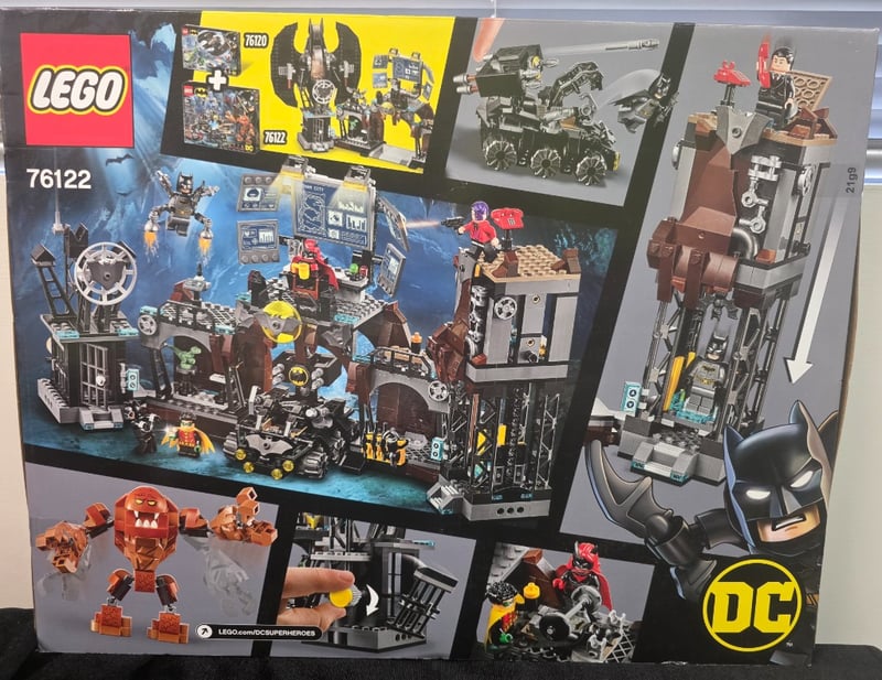 Lego Dc Comics Batman Set 76122 Featuring The Batcave With Clayface Invasion Theme. Complete Buildable Playset Includes Detailed Batcave Structure With Multiple Levels, Control Room, And Weapon Storage. Includes Six