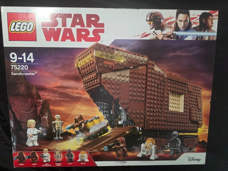 LEGO STAR WARS SANDCRAWLER SET 75220Item Size: Height: 10cm, Width: 40cm, Depth: 70cm, Weight: 0.3KgLego Star Wars Set 75220 Featuring The Iconic Sandcrawler From A New Hope. This Comprehensive Build Includes A Large Motorized Crawler Vehicle With Detailed Brown Brick Construction, Opening Cargo Sections, And Multiple Minifigures Including Luke Skywalker, Droids R2-D2 And Bb-8, Jawas, And Additional Star Wars Characters. Recommended For Ages 9-14. Includes Detailed Interior Compartments, Removable Panels, And Accessory Pieces.Condition: Good - Refer To Images584530+42