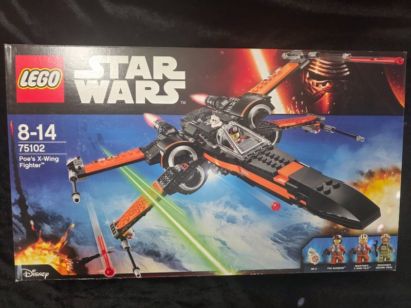 Lego Star Wars Set 75102 Featuring Poe'S X-Wing Fighter From The Force Awakens. Unopened Original Packaging Contains Buildable Starfighter With Opening Canopy, Retractable Landing Gear, And Flick-Fire Missiles. Includes Four