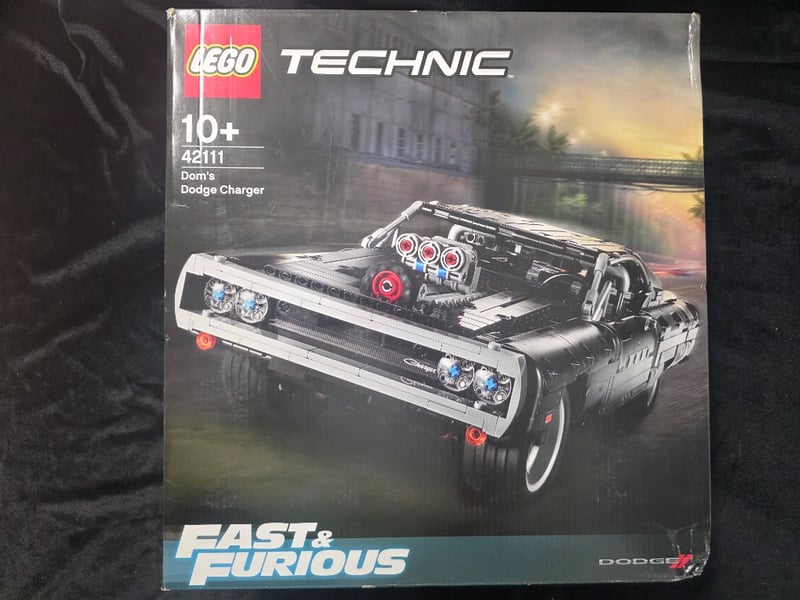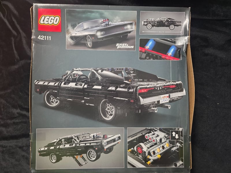 Lego Technic Set 42111 Featuring Dom'S Iconic 1970 Dodge Charger From Fast & Furious Franchise. Advanced Engineering Model Includes Detailed Engine Block With Visible Pistons, Supercharger Components, Opening Hood, Functional Steering, And Working Suspension. Approximately 1,077 Pieces. Age 10+ Recommended. Box Shows Minor Wear Consistent With Display Storage.