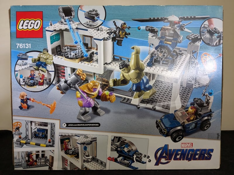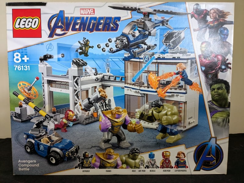 LEGO MARVEL AVENGERS COMPOUND BATTLE SET 76131Lego Marvel Avengers Set 76131 Featuring The Avengers Compound Battle Playset. Includes A Detailed Compound Structure With Multiple Rooms, A Blue Helicopter, Minifigures Of Thanos, Hulk, Ant-Man, Nebula, Iron Man, And Captain Marvel, Plus A Blue Avengers Vehicle. Original Sealed Box With Comprehensive Building Instructions And Complete Minifigure Collection Displayed On Packaging.Condition: Good - Refer To Images584530+106