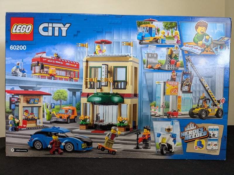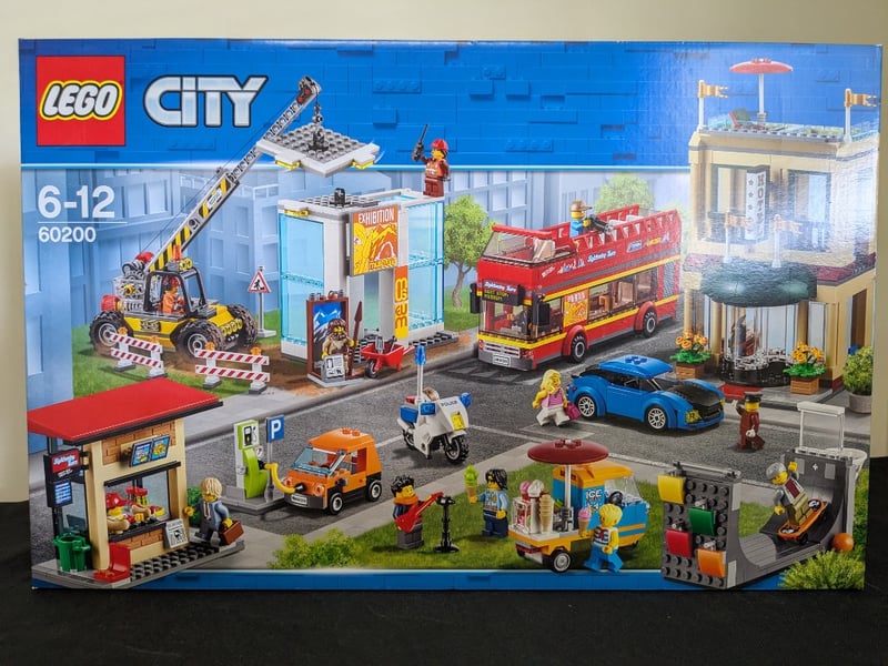 LEGO CITY DOWNTOWN CITY CENTRE SET 60200Comprehensive Lego City Set Featuring Multiple Buildings Including A Downtown Tower Structure, Service Station, Double-Decker Tour Bus, Construction Crane Vehicle, And Assorted Transport Elements. Includes Numerous Minifigures And Accessories Depicting Urban Downtown Scenes With Parking Areas, Street-Level Retail, And Elevated Structures. Original Packaging With Assembly Instructions Visible.Condition: Good - Refer To Images584530+117