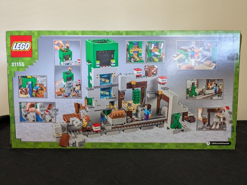 LEGO MINECRAFT SET 21155 - THE MINE WITH CREEPER AND MINIFIGURESItem Size: Height: 28cm, Width: 48cm, Depth: 20cmLego Minecraft Set 21155 Featuring A Modular Mine Structure With Green Creeper Figure, Tnt Blocks, Multiple Minifigures Including Steve And Alex, Buildable Environments With Water And Terrain Elements, And Comprehensive Accessories. Box Shows Minimal Wear With Complete Visual Assembly Documentation.Condition: Good - Refer To Images584530+145