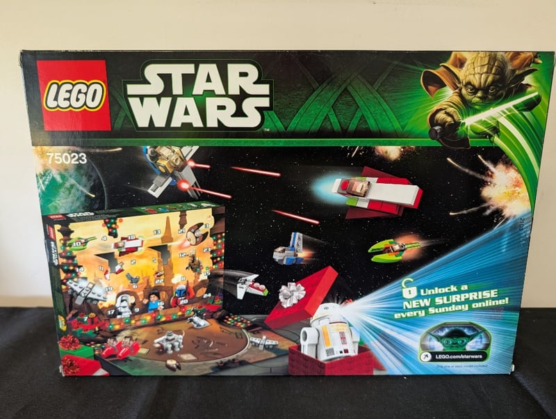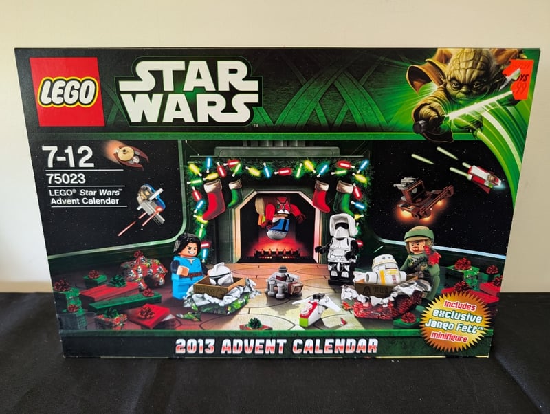 LEGO STAR WARS 2013 ADVENT CALENDAR SET 75023Item Size: Height: 37cm, Width: 52cm, Depth: 12cm, Weight: 2KgLego Star Wars Advent Calendar 75023 (2013) Featuring 24 Daily Surprises With Exclusive Jango Fett Minifigure. Original Packaging Shows Festive Holiday Display Scene With Iconic Star Wars Characters And Spacecraft. Includes Numbered Compartments, Multiple Minifigures, And Buildable Models. Packaging Displays Minor Wear Consistent With Age And StorageCondition: Good - Refer To Images584530+151