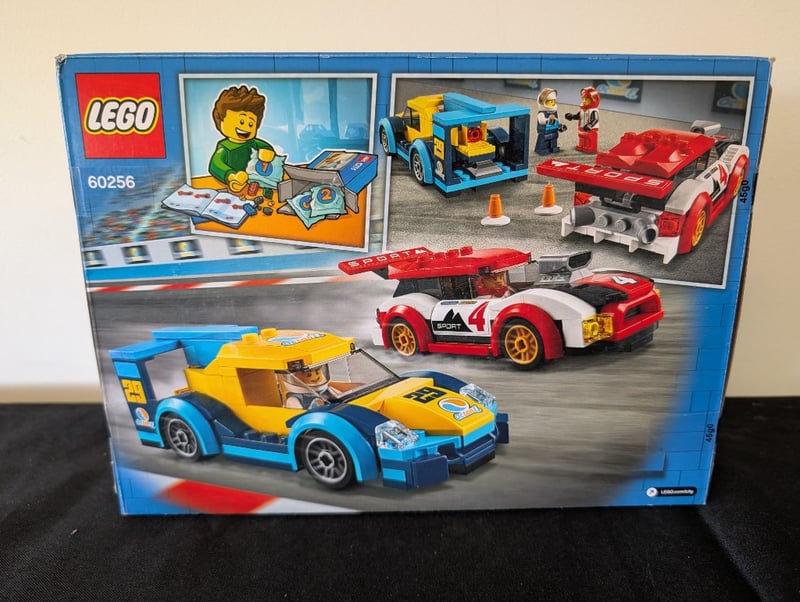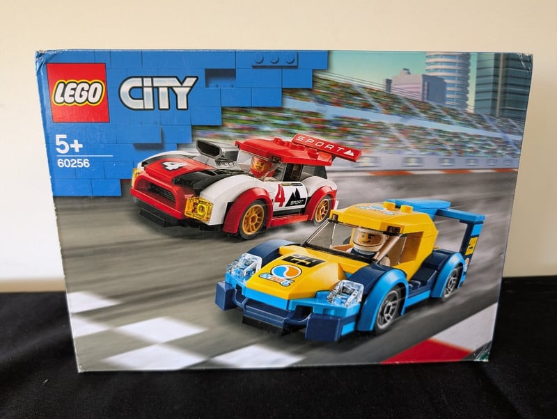LEGO CITY RACING CARS SET 60256Item Size: Height: 26cm, Width: 35cm, Depth: 10cm, Weight: 2KgLego City Set 60256 Featuring Two Buildable Racing Cars—A Red And White Sports Car And A Blue And Yellow Race Car—With Minifigures, Traffic Cones, And Service Station Accessories. Age Rating 5+. Original Packaging In Excellent Condition With Clear Imagery And Set Details Visible.Condition: Good - Refer To Images584530+156