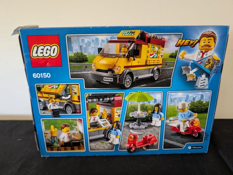 LEGO CITY PIZZA DELIVERY TRUCK SET 60150Item Size: Height: 37cm, Width: 26cm, Depth: 12cm, Weight: 2KgLego City Pizza Delivery Truck Set 60150, Featuring A Yellow And Red Motorised Pizza Truck With Opening Cargo Area, Minifigures Including Pizza Chef And Customer, Red Scooter Delivery Vehicle, Green Parasol, Pizza Accessories, And Instruction Manual. Age Range 5-12 Years. Original Blue Retail Packaging With Visible Wear.Condition: Fair - Refer To Images584530+157