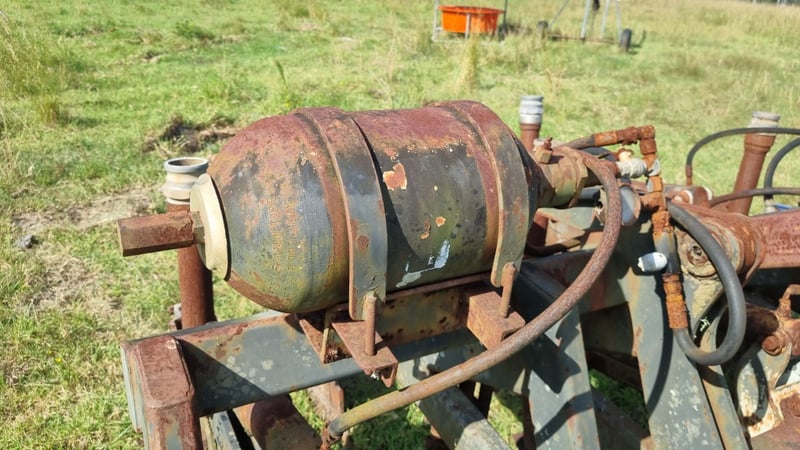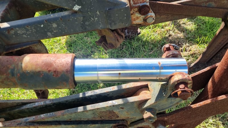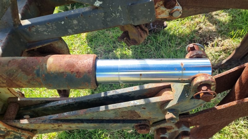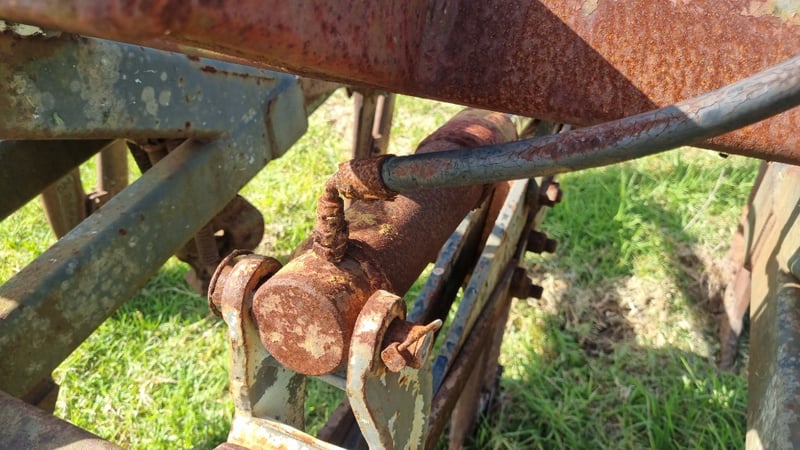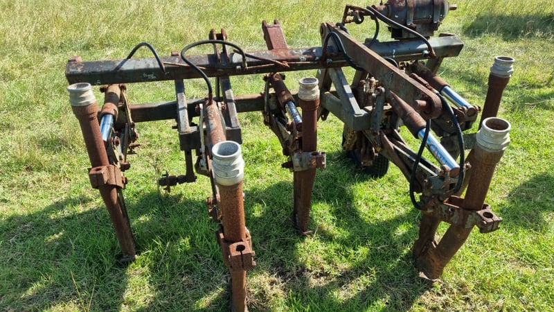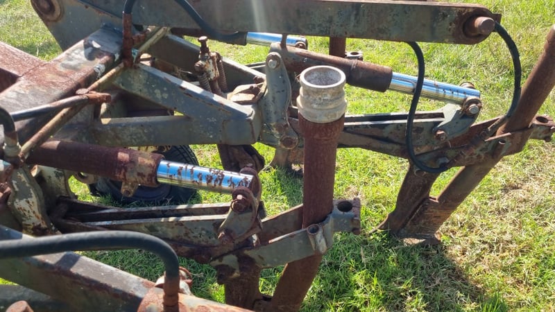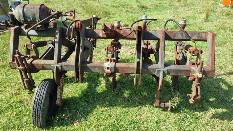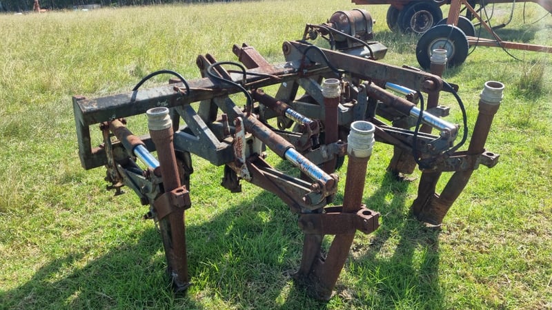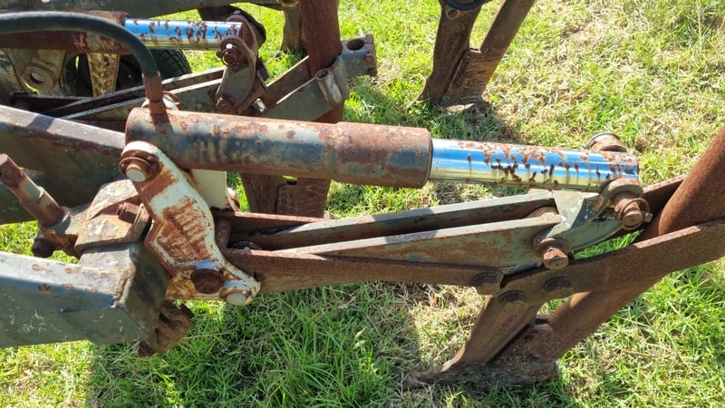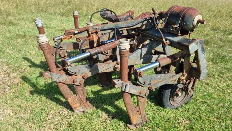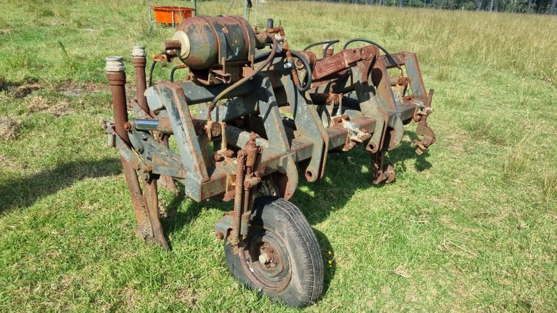5 Tip Aggro Plow, Hydraulic, Set up for 3 link- Note corrosion on Rams and Hydraulic Hoses Approx dimensions 2.4m W x 1.9m D x 1.4m H