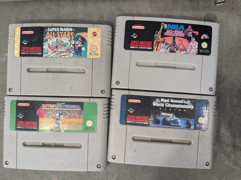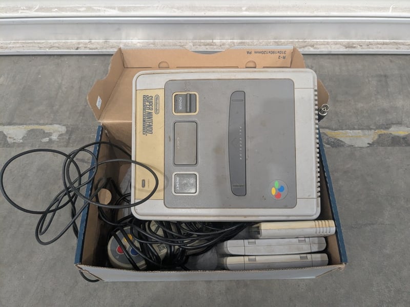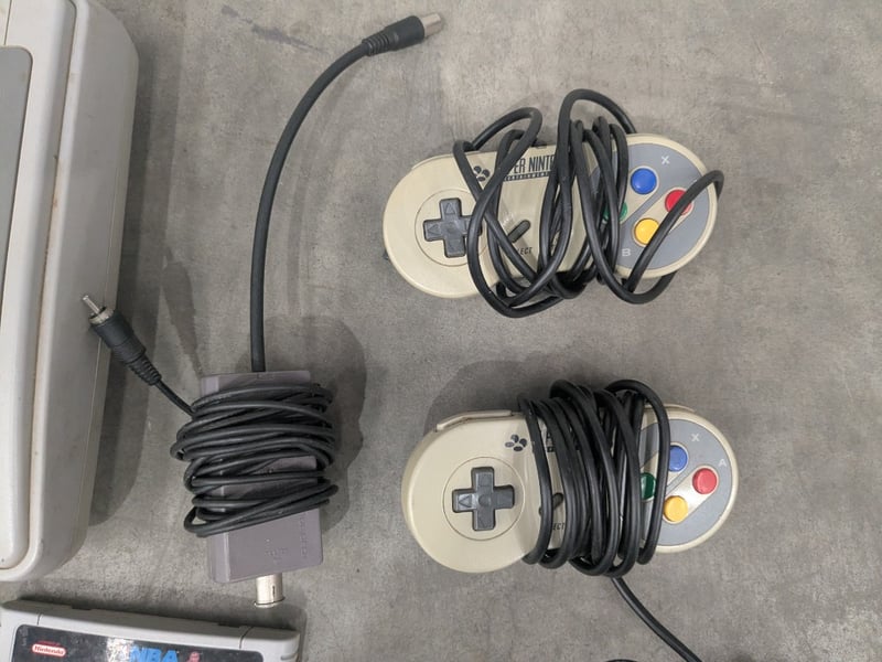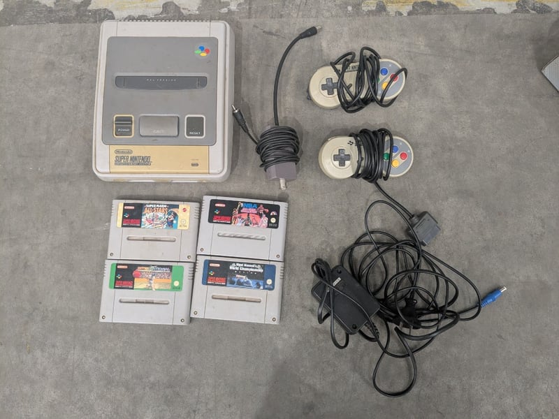 Console, Nintendo, Super Nintendo Entertainment System, includes cables, controllers and games, Sold as lot