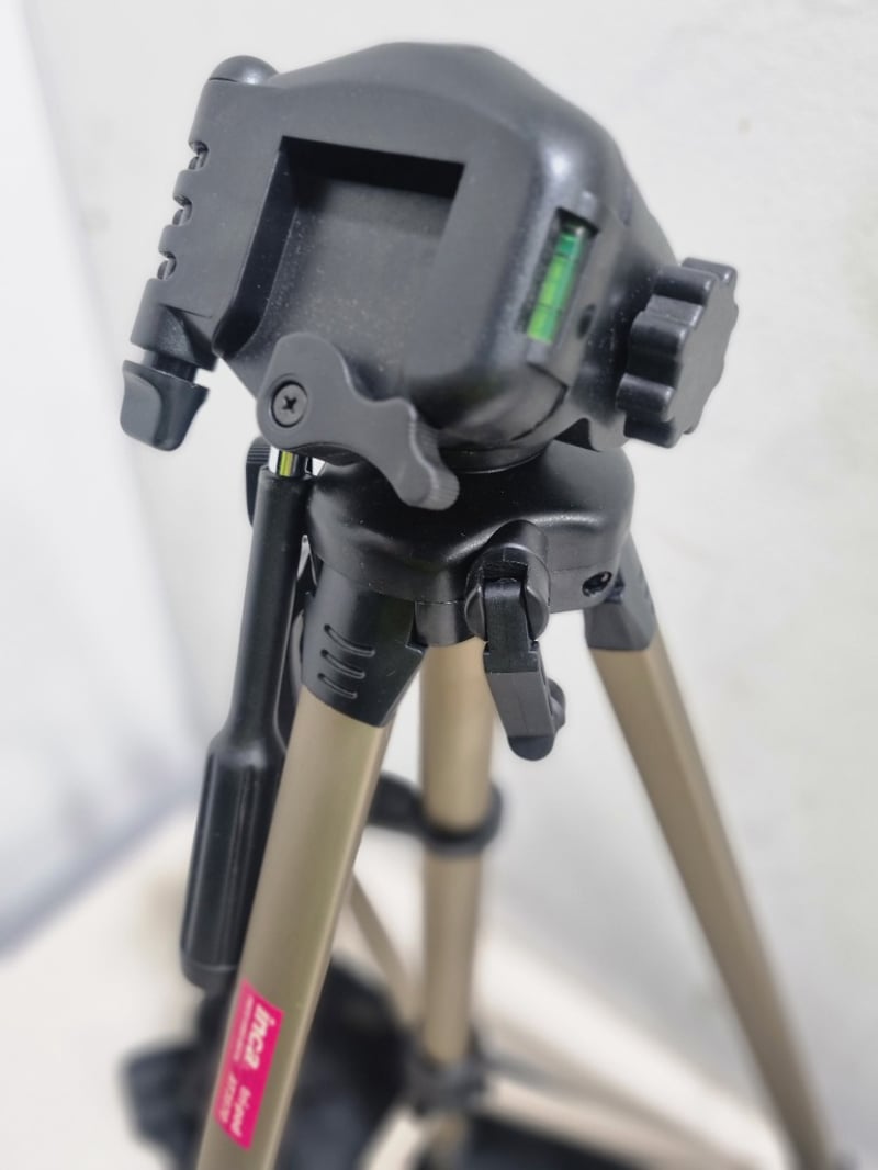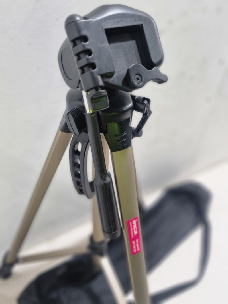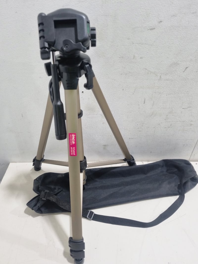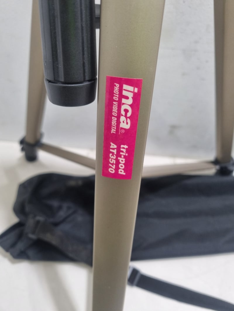 Incapod Tripod AIT3370 - Professional-grade photo tripod with tan/beige aluminum legs and black metal head assembly.Note: untested,signs of wear