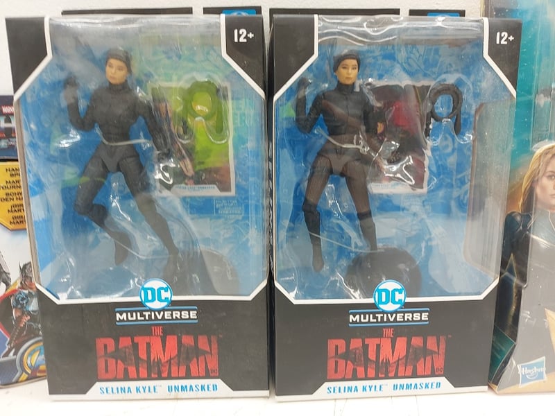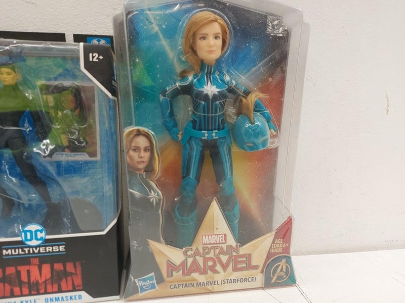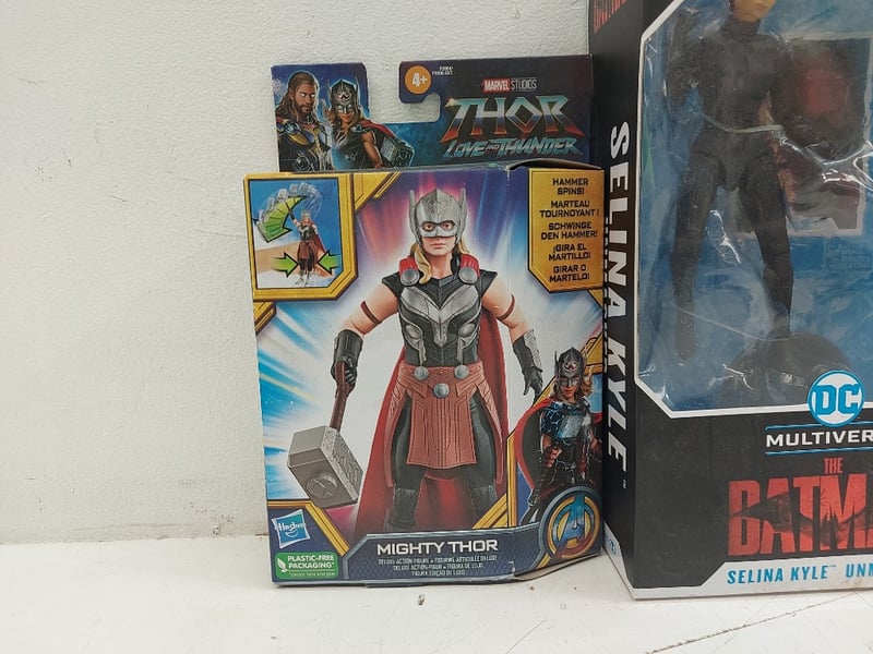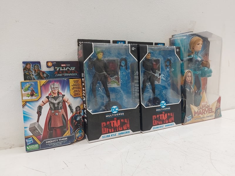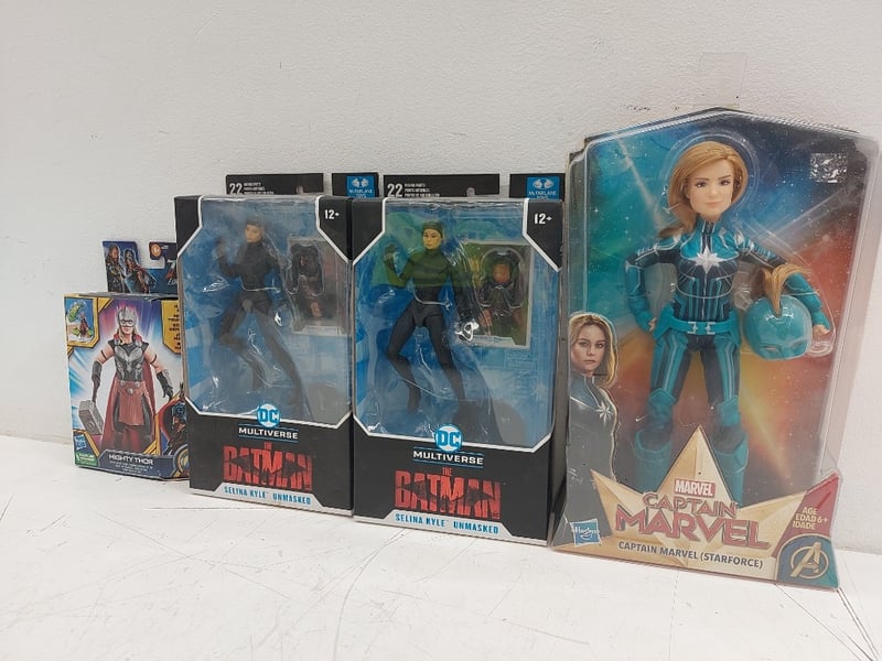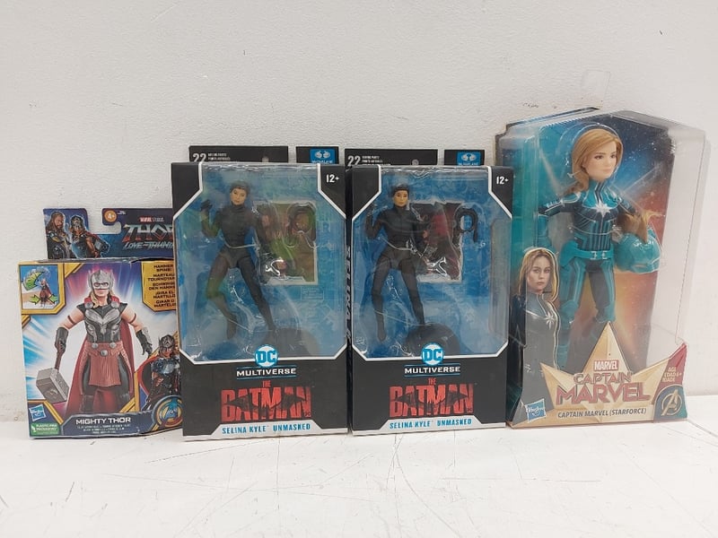 Marvel & DC Figure Pack Lot Includes, Selina Kyle, Unmasked, Captain Marvel (Starforce), Might Thor, Quantity 4