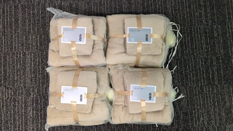 4x Light Brown Bath And Face Towels