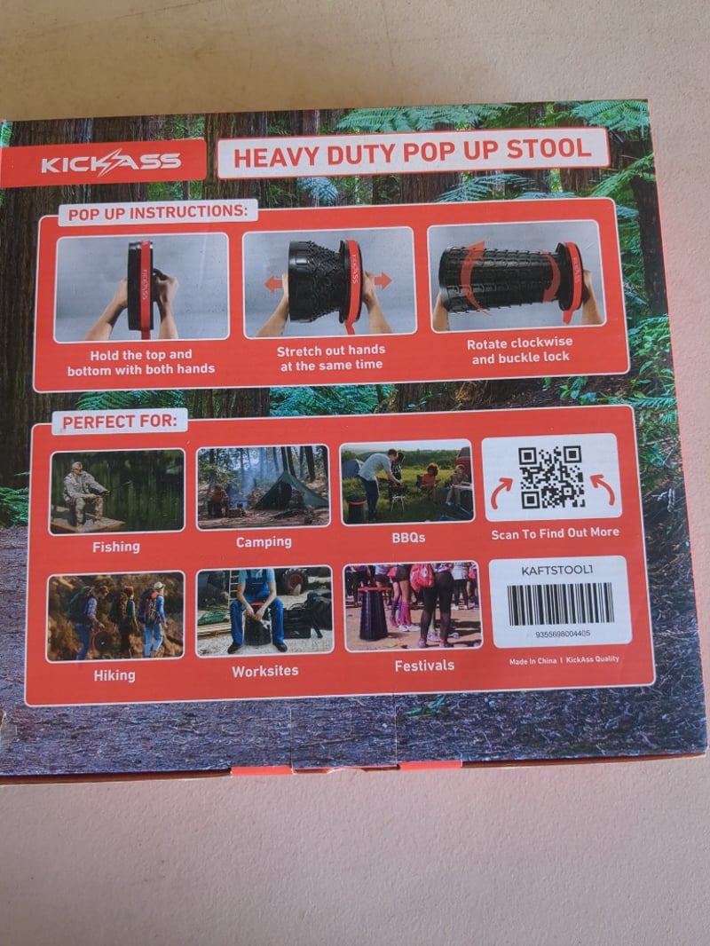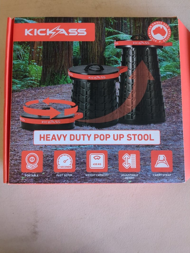 Kickass Heavy Duty Pop Up Stool, Portable, Fast Set Up, 450KG Weight Capacity, Adjustable Height And Carry Strap