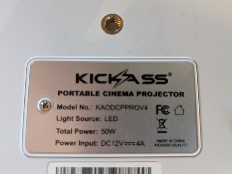 Kickass Portable Cinema Projector With LED Light Source, 50W, 12V DC Power Input