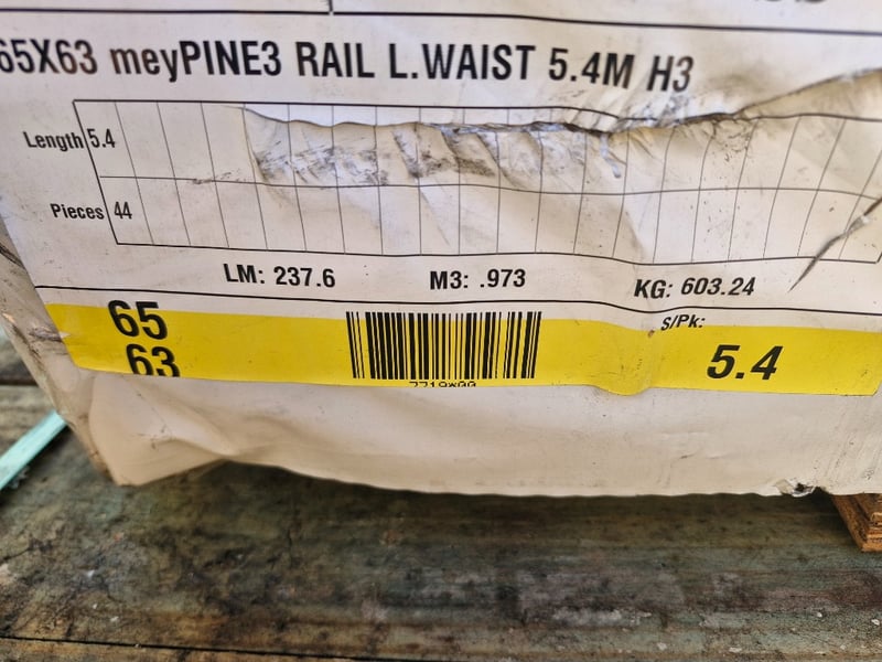 65mm x 63mm x 5400mm, MeyPINE3 Rail L.Waist, H3