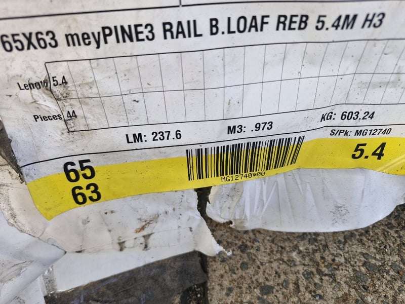 .65mm x 63mm x 5400mm, MeyPINE3 Rail B.Loaf Reb, H3