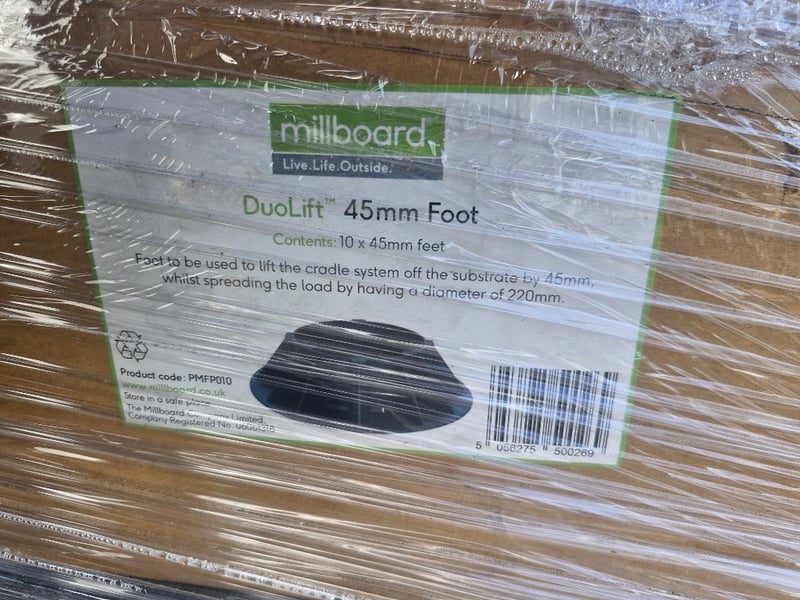 Pallet of Various Fitting and fixings including, Buzdon Pedestals, Duolift feet and cradles, S/Steel Screws to pallet plus more.