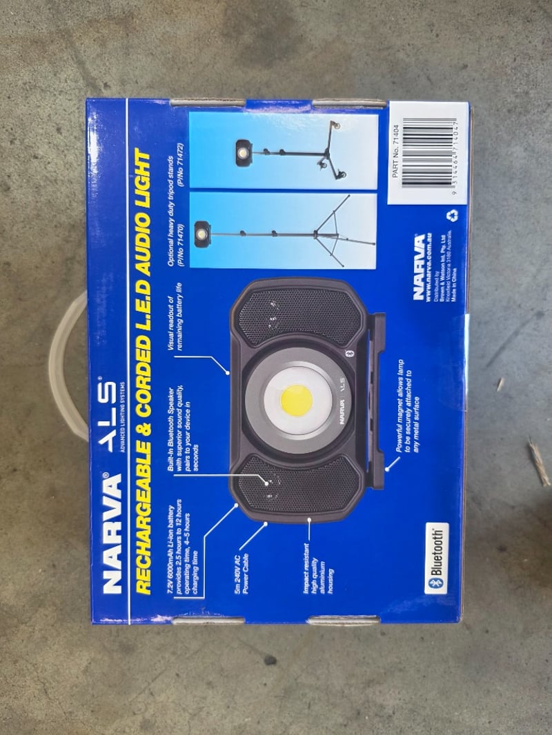 NARVA NLS Advanced Lighting Systems Rechargeable & Corded LED Audio Light (Part No. 71404).