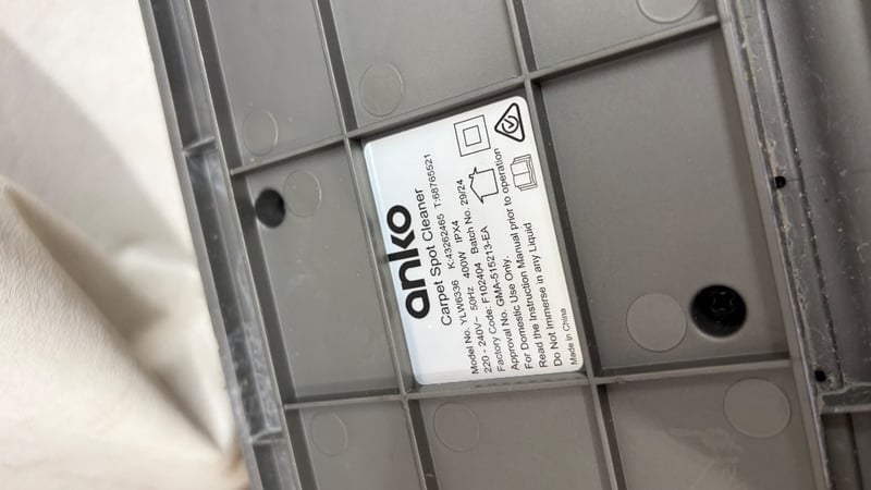 Anko spot cleaner. Model: YLW6336 Dimensions: H 39cm, W 33cm, D 27cm